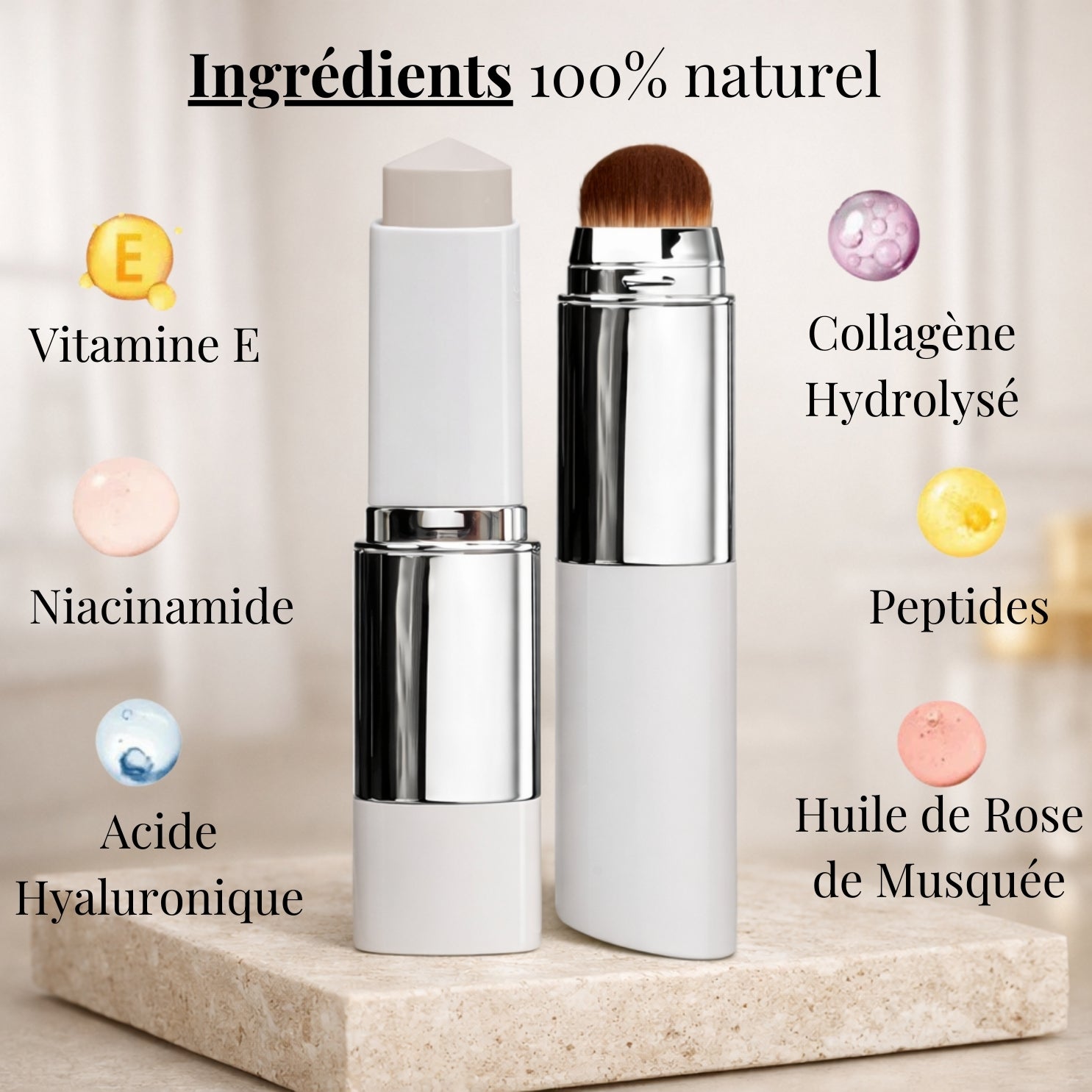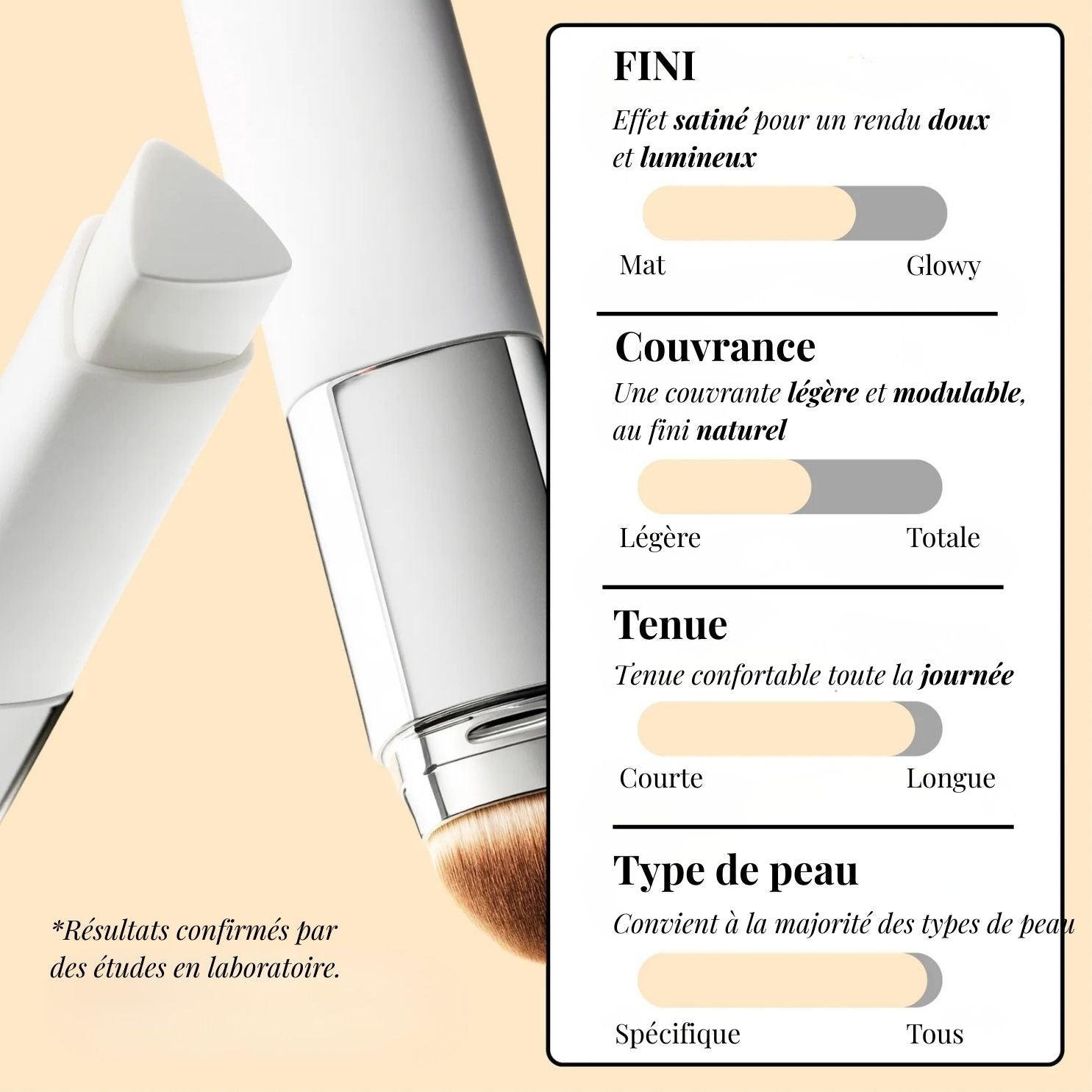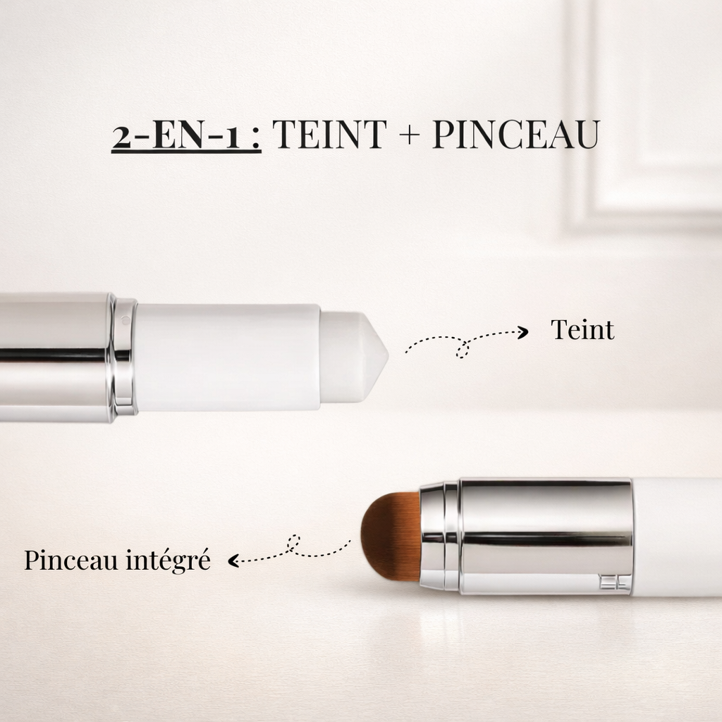 Un fond de teint stick 2-en-1 avec pinceau intégré pour un teint uniforme, naturel et rapide.