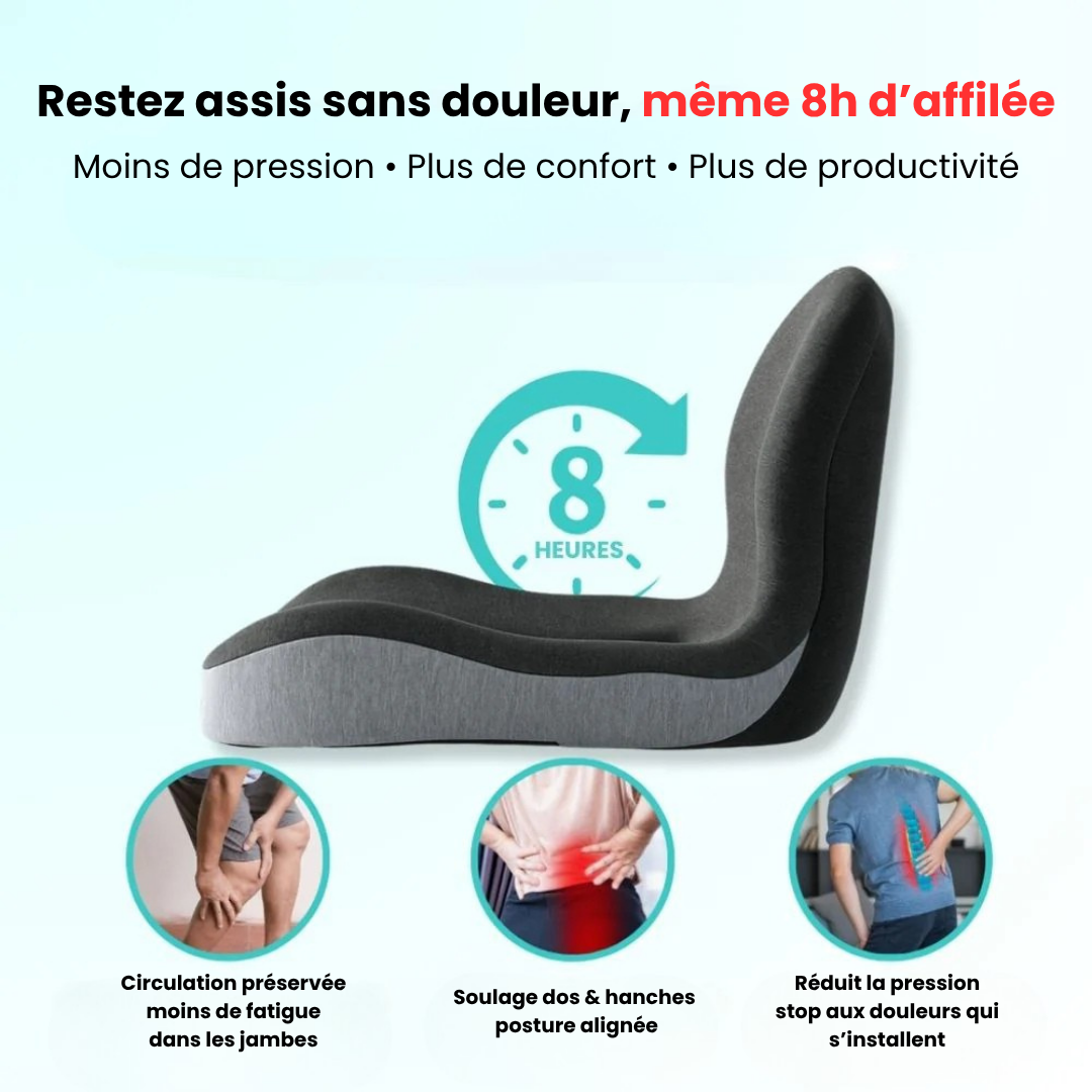🪑 Adieu la pression qui coupe la circulation (mousse mémoire + coccyx libéré)