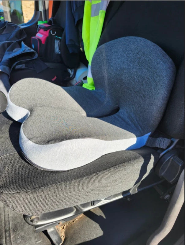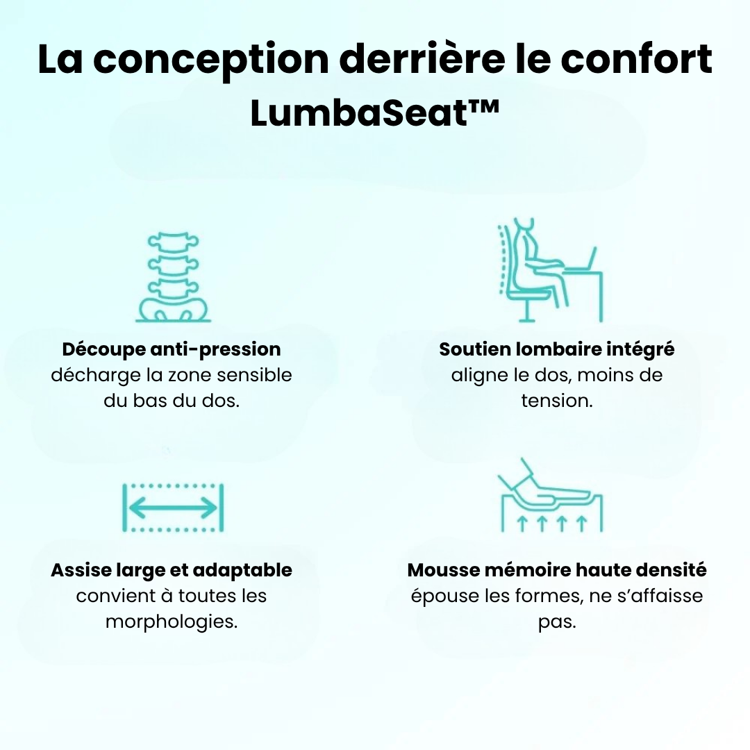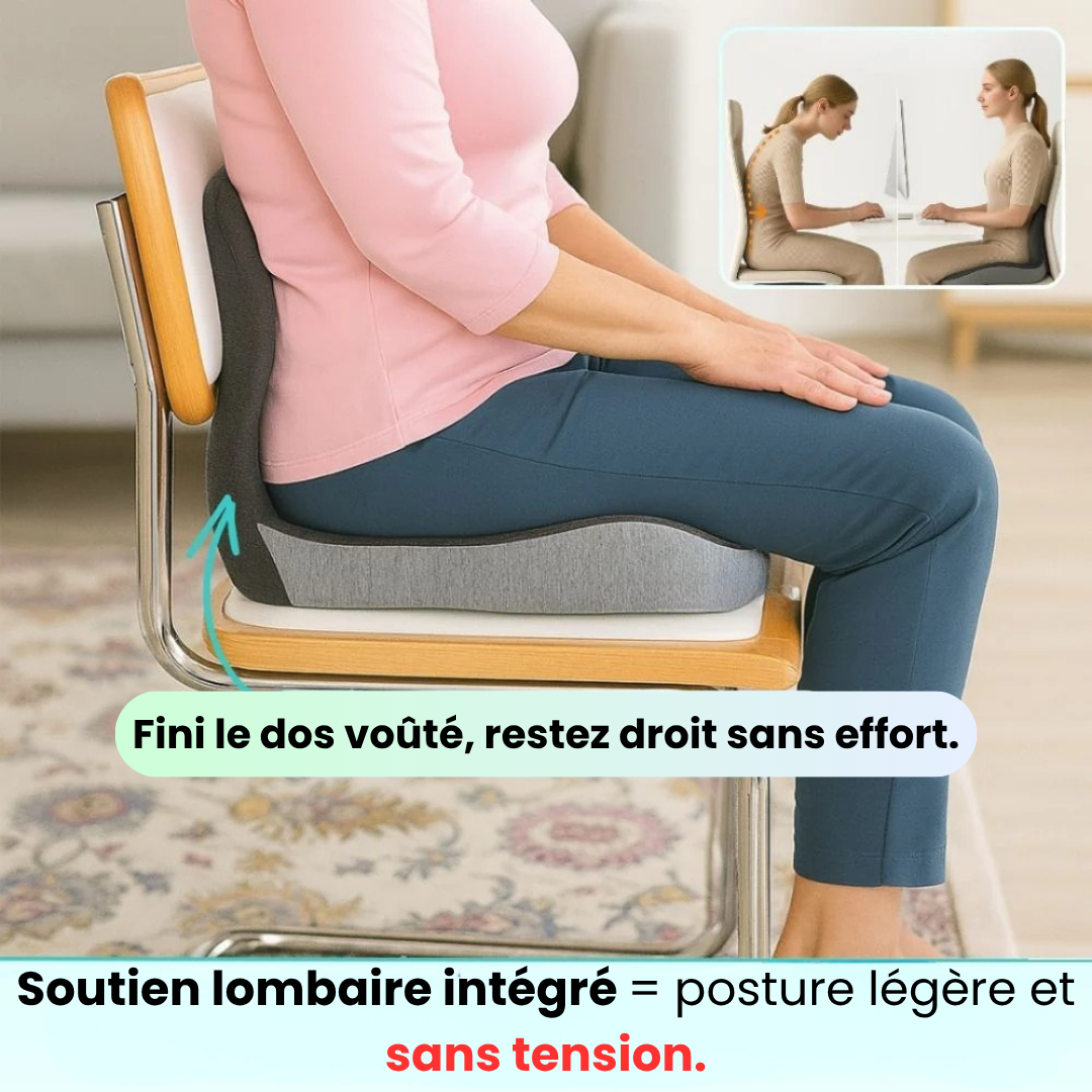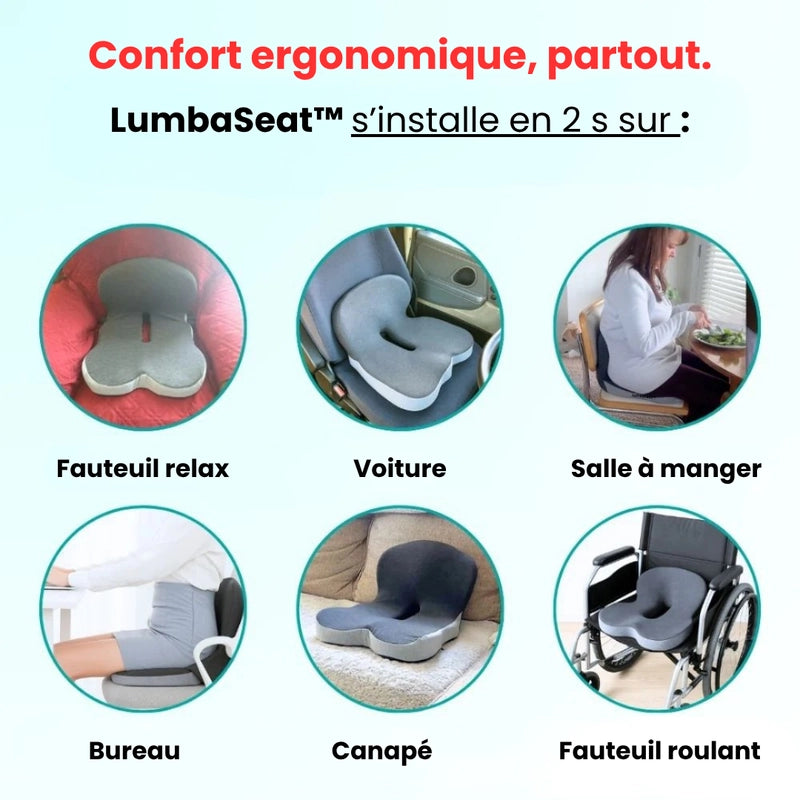 Fini le dos en feu : LumbaSeat™ soulage coccyx & lombaires et transforme n’importe quel siège en vrai fauteuil ergonomique.