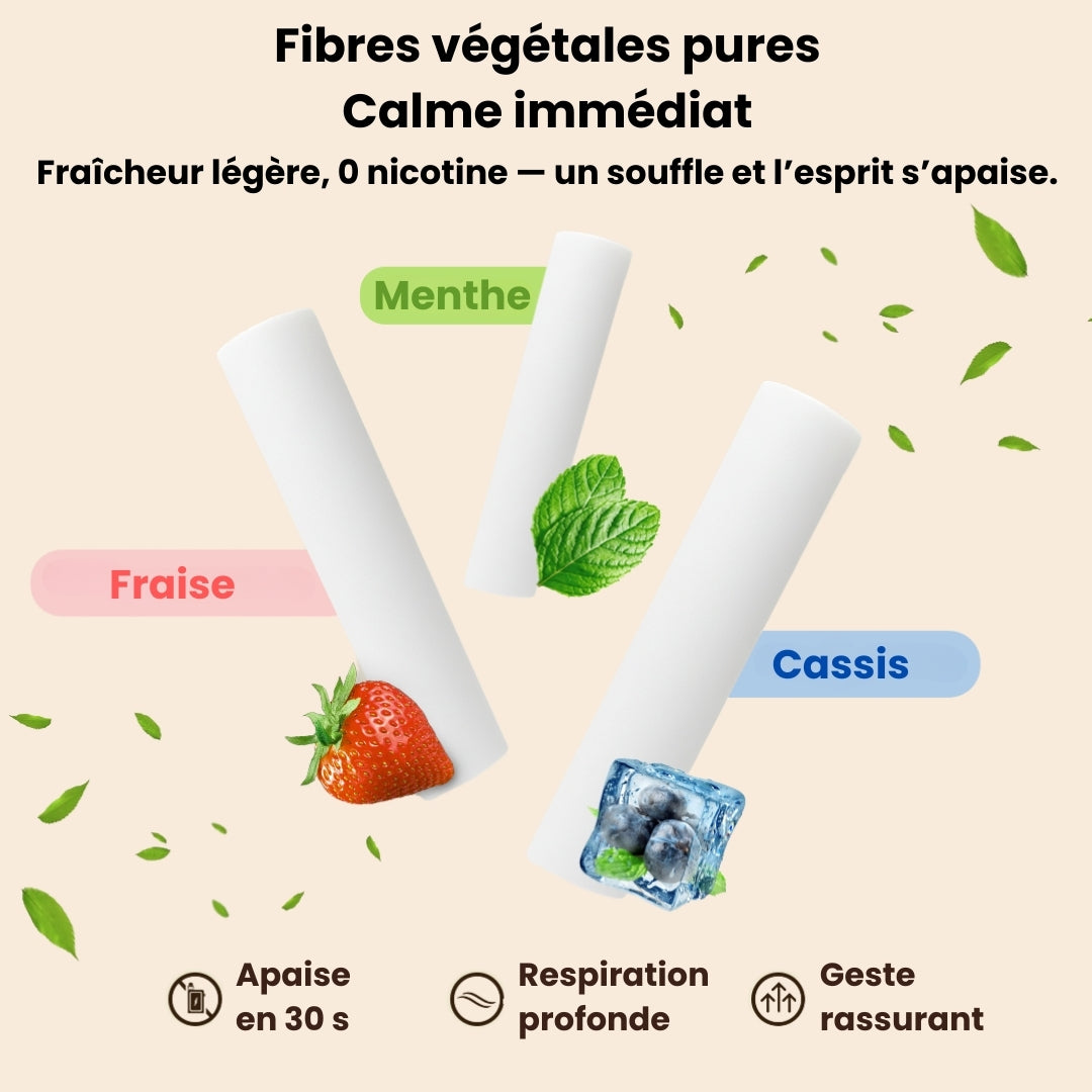 Des arômes d’origine végétale, zéro nicotine, pensés pour un rituel de souffle qui apaise — sans vape, sans huiles.